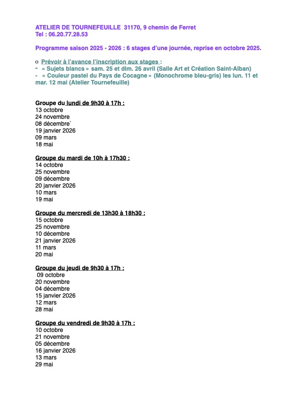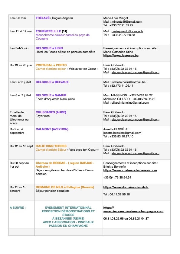 STAGES EN ATELIERS – EXPOS – SÉJOURS